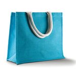 Beach bag/shopper in jute fabric, cotton handles, tear release closure. Accessories Reach standard compliant. BSCI certified. SEDEX certified.